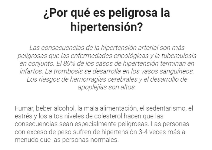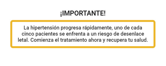 La práctica médica confirma que el medicamento para la hipertensión demuestra su alta eficacia en el 97% de los casos. Además, no hubo efectos secundarios ni adicción a la droga. Teniendo en cuenta lo anterior, llegamos a la conclusión de que esta novedad no es una estafa, sino un producto certificado y probado repetidamente de un fabricante responsable.