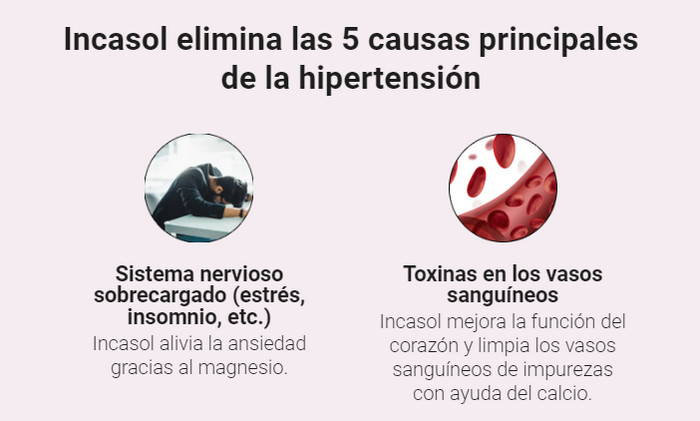 Incasol – cápsulas que ayudan a eliminar permanentemente la hipertensión y mantener su salud bajo control. El medicamento ayuda a reducir y normalizar la presión arterial, diluye la sangre, la limpia del colesterol dañino y las placas ateroscleróticas, fortalece las paredes de los vasos sanguíneos. Además, normaliza los procesos metabólicos en las células del cuerpo, mejora el funcionamiento del corazón y del sistema vascular.