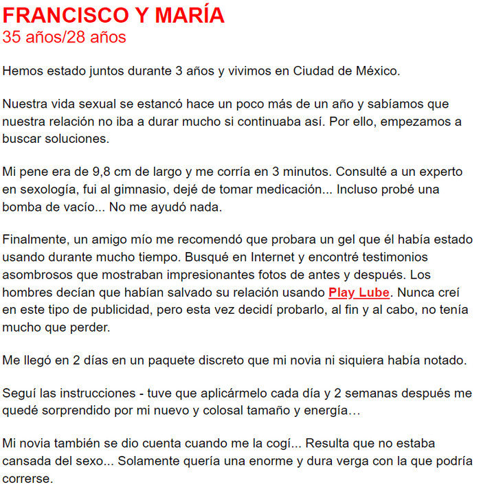 Estos datos confirman que el gel Play Lube es un medio verdaderamente eficaz y seguro para agrandar el pene y mejorar la potencia.