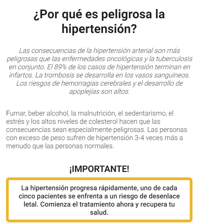 Es peligroso subestimar las crisis hipertensivas, extinguiendo la siguiente caída de presión con una pastilla al azar. Las nuevas gotas para la hipertensión Opticor son de gran ayuda para los habituales de las clínicas, ya que inciden en las causas ocultas de las dolencias. Ajustan suavemente los ajustes erróneos y previenen casos similares a largo plazo. Y si le preocupa un posible efecto secundario, podemos tranquilizarle. El producto está elaborado a partir de materias primas naturales y no causa daños.