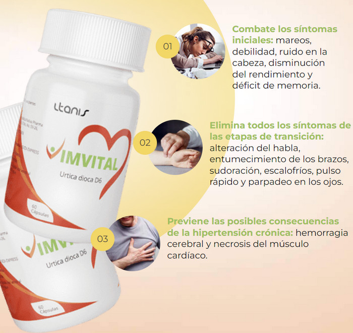 Vimvital recomendado para personas diagnosticadas con hipertensión arterial crónica. Es fácil identificar los primeros síntomas de la enfermedad si prestas atención a tu bienestar. Se recomienda pensar en comprar cápsulas si presenta los siguientes síntomas:
