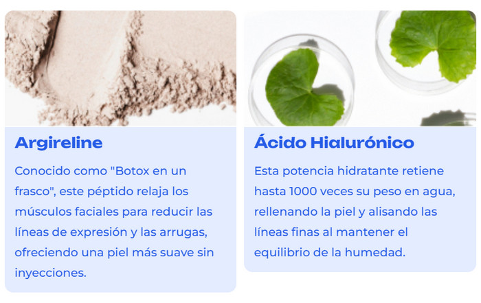 - Reducción de arrugas. El argireline, conocido como una alternativa al botox, puede ayudar a relajar los músculos faciales, lo que reduce la aparición de arrugas y líneas finas