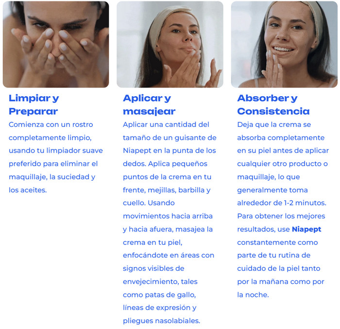 Para que Niapept pueda ayudar a mejorar el estado de la piel, es importante usarlo correctamente. Siga estas sencillas recomendaciones: